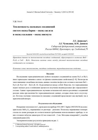 Аннотация:Приведены данные по теплоемкости оксидных соединений, образующихся в системах BaO – Fe[2]O[3] и CaO – Bi[2]O[3]. Отмечено наличие связи между удельной теплоемкостью оксидных соединений и их составом.