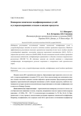Библиографическое описание:Шендрик, Т. Г. Конверсия химически модифицированных углей и углеродсодержащих отходов в жидкие продукты = Conversion of Chemically Modified Coals and Carbonaceous Wastes into Liquid Products / Т. Г. Шендрик, В. А. Кучеренко, В. В. Симонова. - Текст : непосредственный // Журнал Сибирского федерального университета. Химия. - 2013. - Т. 6, № 3. - С. 251-265 : ил. - Библиогр.: с. 260-265 (92 назв.). - ISSN 1998-2836.