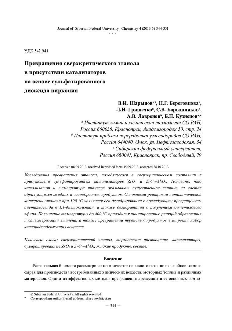 Библиографическое описание:Превращения сверхкритического этанола в присутствии катализаторов на основе сульфатированного диоксида циркония = Conversion of Supercritical Ethanol in the Presence of Catalysts Based / В. И. Шарыпов [и др.]. - Текст : непосредственный // Журнал Сибирского федерального университета. Химия. - 2013. - Т. 6, № 4. - С. 344-351 : ил. - Библиогр.: с. 349-351 (20 назв.). - ISSN 1998-2836.