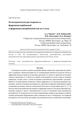 Библиографическое описание:Политермическая растворимость ферроценилкарбоновой и ферроценилдикарбоновой кислот в воде = Polythermal Solubility of Ferrocenylcarboxylic and Ferrocenyldicarboxylic Acids in Water / А. А. Червов [и др.]. - Текст : непосредственный // Журнал Сибирского федерального университета. Химия. - 2014. - Т. 7, № 1. - С. 134-138 : ил., табл. - Библиогр.: с. 138 (7 назв.). - ISSN 1998-2836.