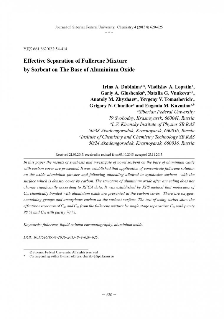 Библиографическое описание:Эффективное разделение фуллереновой смеси сорбентом на основе оксида алюминия = Effective Separation of Fullerene Mixture by Sorbent on The Base of Aluminium Oxide / И. А. Дубинина [и др.]. - Текст : непосредственный // Журнал Сибирского федерального университета. Химия. - 2015. - Т. 8, № 4. - С. 620-625 : ил. - Библиогр.: с. 625 (5 назв.). - ISSN 1998-2836.