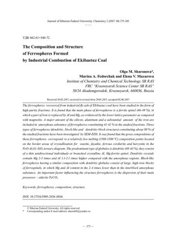 Библиографическое описание:Шаронова, О. М. Состав и строение ферросфер, образованных при промышленном сжигании угля Экибастузского бассейна = The Composition and Structure of Ferrospheres Formed by Industrial Combustion of Ekibastuz Coal / О. М. Шаронова, М. А. Федорчак, Е. В. Мазурова. - Текст : непосредственный // Журнал Сибирского федерального университета. Химия. - 2017. - Т. 10, № 2. - С. 175-185 : ил. - Библиогр.: с. 184-185 (21 назв.). - ISSN 1998-2836.