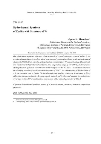 Аннотация:Одной из наиболее важных целей исследования процессов кристаллизации цеолитов является создание материалов с заранее заданными структурой и составом. На основе природного минерала месторождения Нахчывана был синтезирован цеолит типа калийсодержащего W.