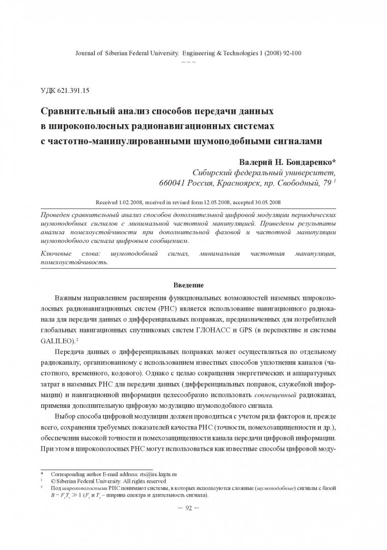 Библиографическое описание:Бондаренко, Валерий Н... Сравнительный анализ способов передачи данных в широкополосных радионавигационных системах с частотно-манипулированными шумоподобными сигналами = The Comparative Analysis of Ways of Data Transfer in Broadband Radionavigation Systems with Pseudo Noise Signal with Minimum Shift Keying / В. Н. Бондаренко. - Текст : непосредственный // Журнал Сибирского федерального университета. Техника и технологии. - 2008. - Т. 1, № 1. - С. 92-100. - Библиогр.: с. 100. - ISSN 1999-494X.
