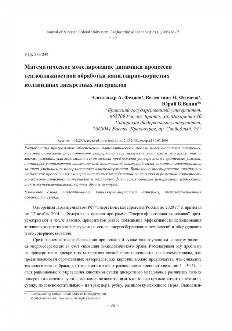 Библиографическое описание:Федяев, Александр А... Математическое моделирование динамики процессов тепловлажностной обработки капиллярно-пористых коллоидных дискретных материалов = The Mathematical Heat-Processing Dynamics Modeling of the Capillary-Porous Colloidal Discrete Materials / А. А. Федяев, В. Н. Федяева, Ю. В. Видин. - Текст : непосредственный // Журнал Сибирского федерального университета. Техника и технологии. - 2008. - Т. 1, № 1. - С. 68-75. - Библиогр.: с. 74. - ISSN 1999-494X.