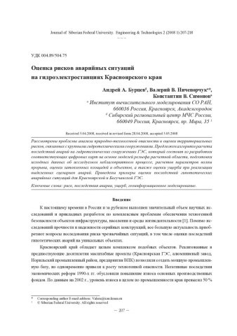 Оценка рисков аварийных ситуаций на гидроэлектростанциях Красноярского краястатья из журнала