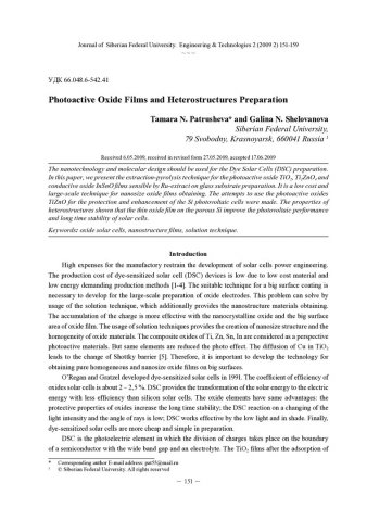 Ключевые слова: наноструктурированные пленки, оксидные солнечные элементы, техника решения
