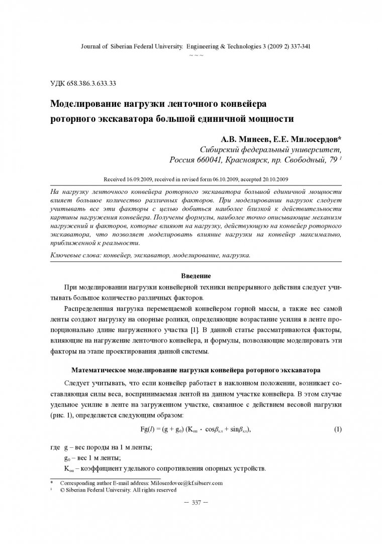 Библиографическое описание:Минеев, А. В. Моделирование нагрузки ленточного конвейера роторного экскаватора большой единичной мощности = Modeling of Loading of the Tape Conveyor of Rotor Dredge of the Big Individual Capacity / А. В. Минеев, Е. Е. Милосердов. - Текст : непосредственный // Журнал Сибирского федерального университета. Техника и технологии. - 2009. - Т. 2, № 3. - С. 337-341. - Библиогр.: с. 341. - ISSN 1999-494X.