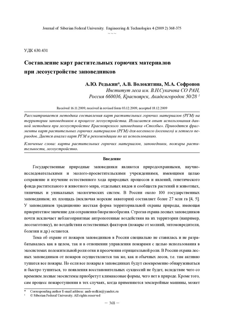 Библиографическое описание:Редькин, А. Ю. Составление карт растительных горючих материалов при лесоустройстве заповедников = Mapping Vegetation Fuel by Forest Inventory of Nature Reserves / А. Ю. Редькин, А. В. Волокитина, М. А. Софронов. - Текст : непосредственный // Журнал Сибирского федерального университета. Техника и технологии. - 2009. - Т. 2, № 4. - С. 368-375. - Библиогр.: с. 375. - ISSN 1999-494X.