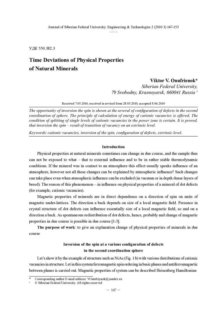 Библиографическое описание:Onufrienok, Viktor V... Time Deviations of Physical Properties of Natural Minerals = Временные девиации физических свойств природных минералов / V. V. Onufrienok. - Текст : непосредственный // Журнал Сибирского федерального университета. Техника и технологии. - 2010. - Т. 3, № 2. - С. 147-153. - Библиогр.: с. 152-153. - ISSN 1999-494X.