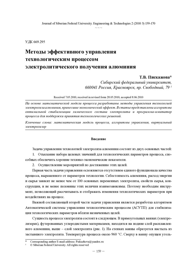 Библиографическое описание:Пискажова, Т. В. Методы эффективного управления технологическим процессом электролитического получения алюминия = Efficient Methods for Control of Technological Aluminum Reduction Process / Т. В. Пискажова. - Текст : непосредственный // Журнал Сибирского федерального университета. Техника и технологии. - 2010. - Т. 3, № 2. - С. 159-170. - Библиогр.: с. 169-170. - ISSN 1999-494X.