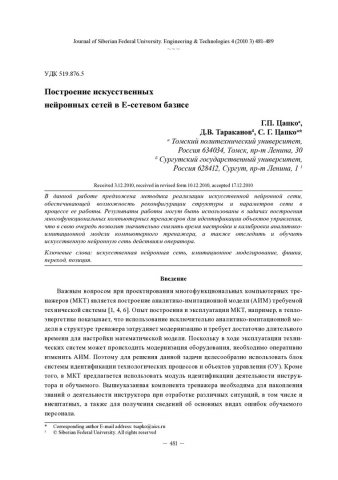 Библиографическое описание: Цапко, Г. П. Построение искусственных нейронных сетей в Е-сетевом базисе = Constructing Artificial Neural Networks in the E-net Basis / Г. П. Цапко, Д. В. Тараканов, С. Г. Цапко. - Текст : непосредственный // Журнал Сибирского федерального университета. Техника и технологии. - 2010. - Т. 3, № 4. - С. 481-489. - Библиогр.: с. 488. - ISSN 1999-494X.