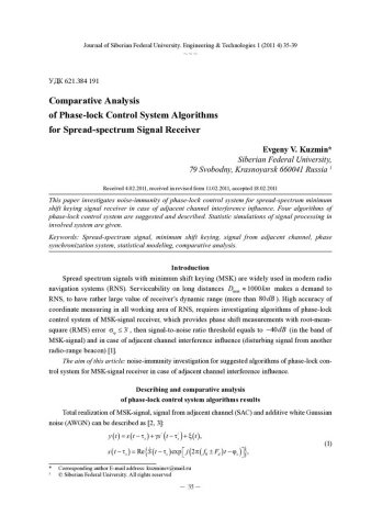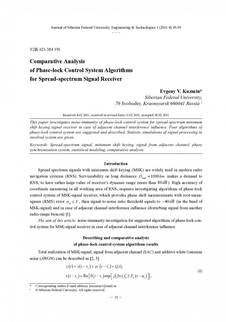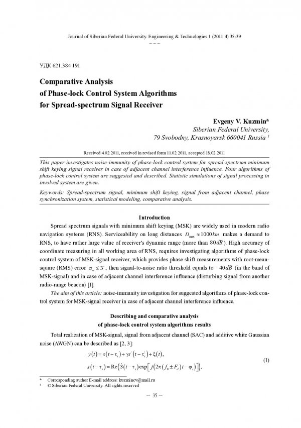 Библиографическое описание:Kuzmin, Evgeny V... Comparative Analysis of Phase-lock Control System Algorithms for Spread-spectrum Signal Receiver = Сравнительный анализ алгоритмов слежения за фазой шумоподобного сигнала / E. V. Kuzmin. - Текст : непосредственный // Журнал Сибирского федерального университета. Техника и технологии. - 2011. - Т. 4, № 1. - С. 35-39. - Библиогр.: с. 38. - ISSN 1999-494X.