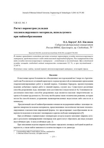 Библиографическое описание:Корзун, О. А. Расчет параметров укладки теплоизолирующего материала, используемого при майнообразовании = Calculation of Parameters Insulating Material Used in Formation of Ice Cracks / О. А. Корзун, В. Е. Кисляков. - Текст : непосредственный // Журнал Сибирского федерального университета. Техника и технологии. - 2011. - Т. 4, № 3. - С. 275-282. - Библиогр.: с. 281. - ISSN 1999-494X.