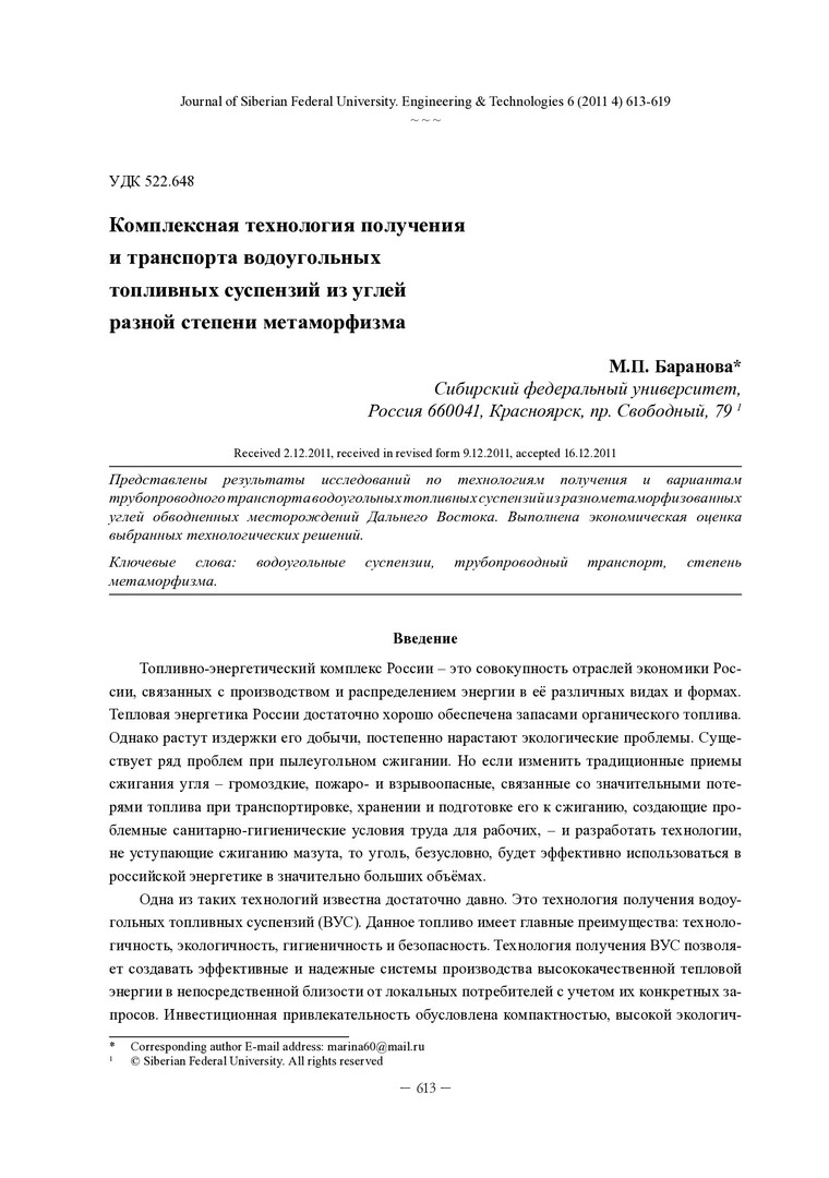 Библиографическое описание:Баранова, М. П. Комплексная технология получения и транспорта водоугольных топливных суспензий из углей разной степени метаморфизма = Complex Technology of Production and Transport of Coal Water Fuel Suspensions from Coals of Different Degree of the Metamorphism / М. П. Баранова. - Текст : непосредственный // Журнал Сибирского федерального университета. Техника и технологии. - 2011. - Т. 4, № 6. - С. 613-619. - Библиогр. в конце ст. - ISSN 1999-494X.