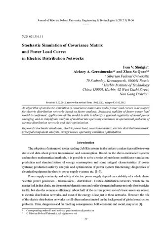 Библиографическое описание:Shulgin, Ivan. Stochastic Simulation of Covariance Matrix and Power Load Curves = Стохастическое моделирование матрицы корреляционных моментов и графиков нагрузок мощностей узлов распределительных электрических сетей / Ivan V. Shulgin, Aleksey A. Gerasimenko, Zhou Su Quan. - Текст : непосредственный // Журнал Сибирского федерального университета. Техника и технологии. - 2012. - Т. 5, № 1. - С. 39-56 : табл. - Библиогр.: с. 54-56 (16 назв.). - ISSN 1999-494X.