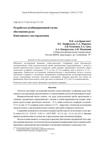 Разработка комбинированной схемы обогащения руды Кингашского месторождениястатья из журнала