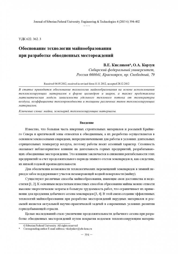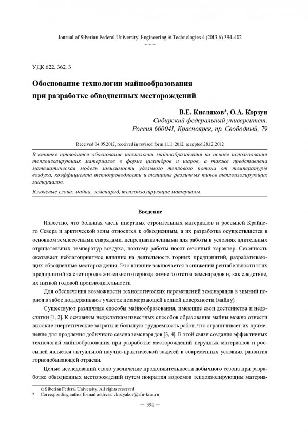 Библиографическое описание:Кисляков, В. Е. Обоснование технологии майнообразования при разработке обводненных месторождений = Substantiation of Technology of Formation of Ice Cracks when Developing Drowned fields / В. Е. Кисляков, О. А. Корзун. - Текст : непосредственный // Журнал Сибирского федерального университета. Техника и технологии. - 2013. - Т. 6, № 4. - С. 394-402 : рис., табл. - Библиогр.: с. 402. - ISSN 1999-494X.
