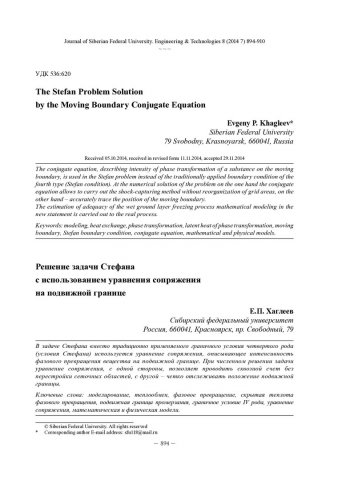 Библиографическое описание: Khagleev, Evgeny P... The Stefan Problem Solution by the Moving Boundary Conjugate Equation = Решение задачи Стефана с использованием уравнения сопряжения на подвижной границе / E. P. Khagleev. - Текст : непосредственный // Журнал Сибирского федерального университета. Техника и технологии. - 2014. - Т. 7, № 8. - С. 894-910. - Библиогр.: с. 908-910. - ISSN 1999-494X.