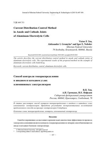 Аннотация:В статье рассмотрен способ контроля токораспределения в анодном и катодном узлах алюминиевых электролизеров. Приведены результаты экспериментальных исследований предложенного способа на примере электролизеров Содерберга.