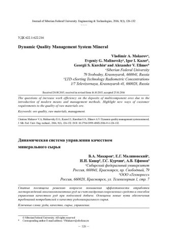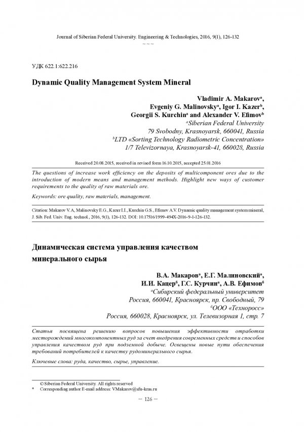 Библиографическое описание:Динамическая система управления качеством минерального сырья / В. А. Макаров [и др.]. - Текст : непосредственный // Журнал Сибирского федерального университета. Техника и технологии. - 2016. - Т. 9, № 1. - С. 126-132 : рис. - Библиогр.: с. 131-132. - ISSN 1999-494X.
