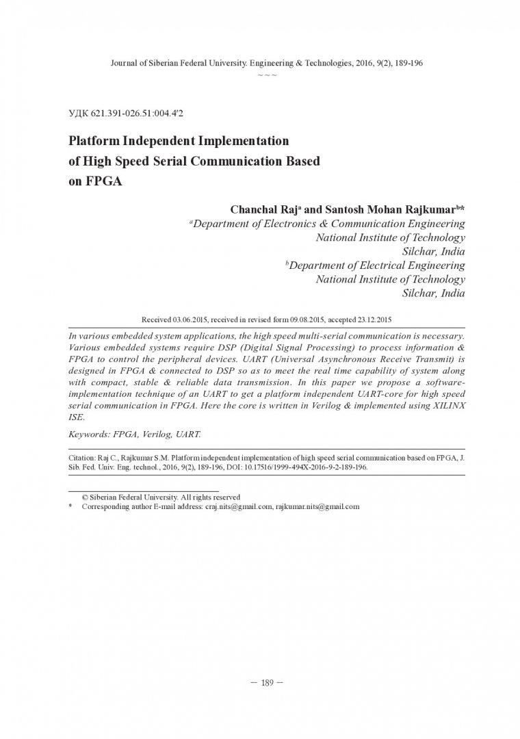 Platform Independent Implementation of High Speed Serial Communication Based on FPGAстатья из журнала