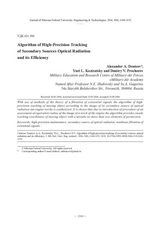 Библиографическое описание:Донцов, А. А. Алгоритм высокоточного сопровождения вторичных источников оптического излучения и его эффективность = Algorithm of High-Precision Tracking of Secondary Sources Optical Radiation and its Efficiency / А. А. Донцов, Ю. Л. Козирацкий, Д. В. Прохоров. - Текст : непосредственный // Журнал Сибирского федерального университета. Техника и технологии. - 2016. - Т. 9, № 8. - С. 1144-1152 : рис. - Библиогр.: с. 1151-1152. - ISSN 1999-494X.