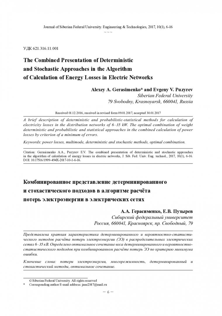 Библиографическое описание:Gerasimenko, Alexey. The Combined Presentation of Deterministic and Stochastic Approaches in the Algorithm of Calculation of Energy Losses in Electric Networks = Комбинированное представление детерминированного и стохастического подходов в алгоритме расчёта потерь электроэнергии в электрических сетях / A. A. Gerasimenko, E. V. Puzyrev. - Текст : непосредственный // Журнал Сибирского федерального университета. Техника и технологии. - 2017. - Т. 10, № 1. - С. 6-16 : рис. - Библиогр.: с. 14-16. - ISSN 1999-494X.