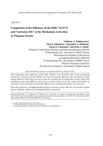 Библиографическое описание:Сравнение эффективности мельниц «АГО-2» и «Активатор-2SL» при механической активации порошка титана / В. А. Полубояров, О. П. Солоненко, А. А. Жданок [и др.]. - Текст : непосредственный // Журнал Сибирского федерального университета. Техника и технологии. - 2017. - Т. 10, № 5. - С. 646-656 : рис. - Библиогр.: с. 655-656. - ISSN 1999-494X.