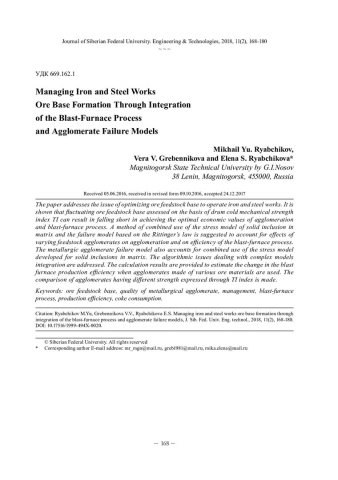 Библиографическое описание: Рябчиков, М. Ю. Управление формированием рудной базы металлургического предприятия на основе интеграции моделей доменного процесса и разрушения агломерата = Managing Iron and Steel Works Ore Base Formation Through Integration of the Blast-Furnace Process and Agglomerate Failure Models / М. Ю. Рябчиков, В. В. Гребенникова, Е. С. Рябчикова. - Текст : непосредственный // Журнал Сибирского федерального университета. Техника и технологии. - 2018. - Т. 11, № 2. - С. 168-180 : рис. - Библиогр.: с. 179-180. - ISSN 1999-494X.