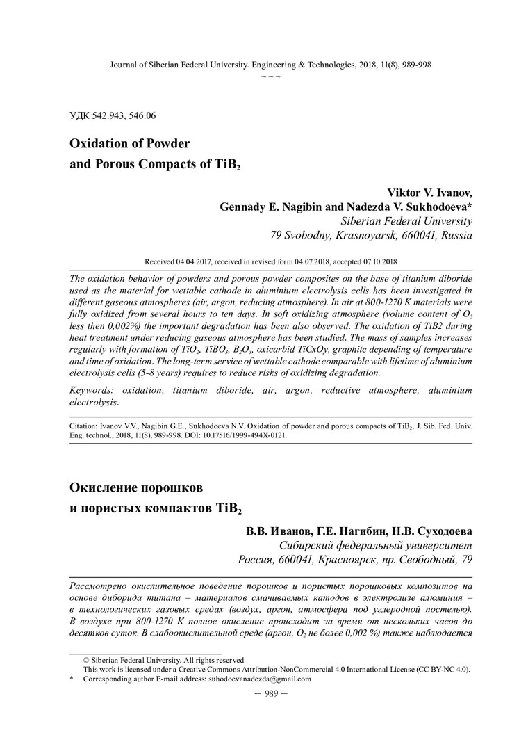 Библиографическое описание:Иванов, В. В. Окисление порошков и пористых компактов TiB2 = Oxidation of Powder and Porous Compacts of TiB2 / В. В. Иванов, Г. Е. Нагибин, Н. В. Суходоева. - Текст : непосредственный // Журнал Сибирского федерального университета. Техника и технологии. - 2018. - Т. 11, № 8. - С. 989-998 : рис. - Библиогр.: с. 997-998. - ISSN 1999-494X.