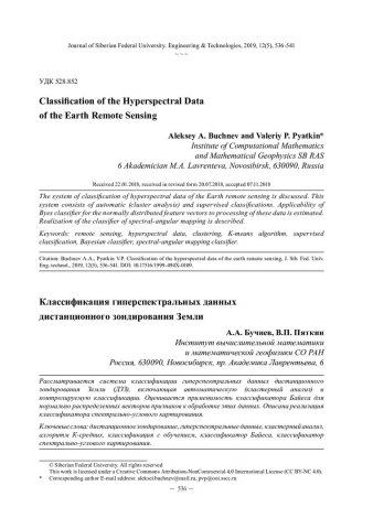 Библиографическое описание:Бучнев, А. А. Классификация гиперспектральных данных дистанционного зондирования Земли = Classification of the Hyperspectral Data of the Earth Remote Sensing / А. А. Бучнев, В. П. Пяткин. - Текст : непосредственный // Журнал Сибирского федерального университета. Техника и технологии. - 2019. - Т. 12, № 5. - С. 536-541 : рис. - Библиогр.: с. 540-541. - ISSN 1999-494X.