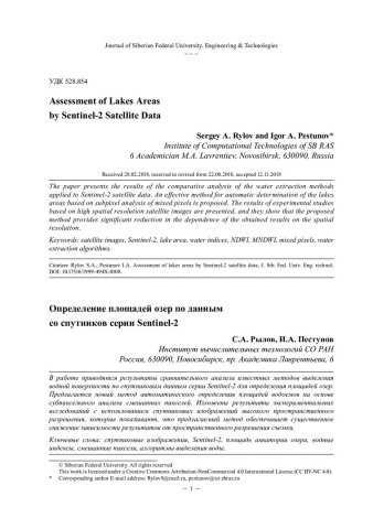 Определение площадей озер по данным со спутников серии Sentinel-2статья из журнала