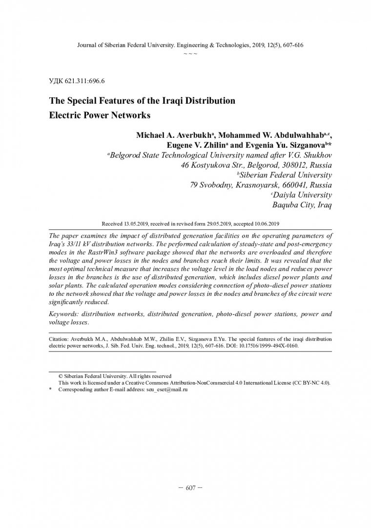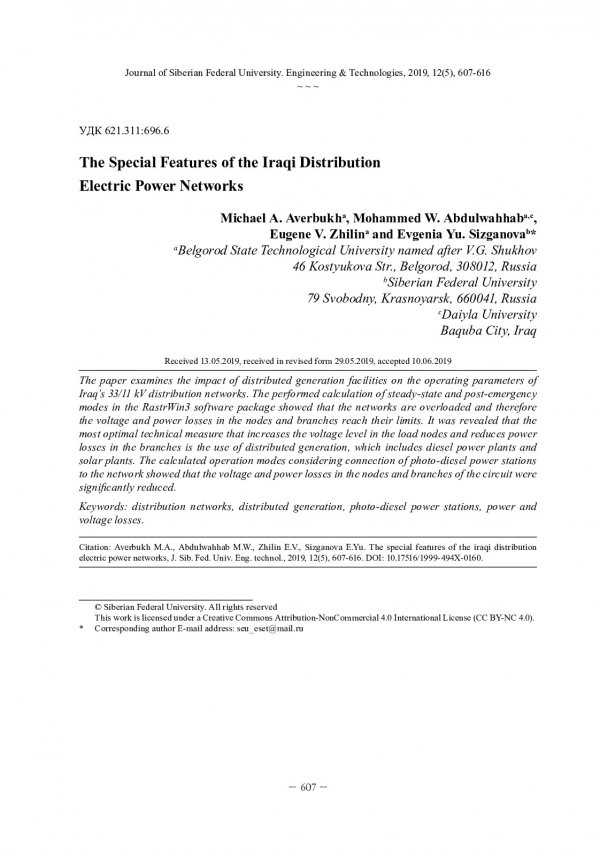 Библиографическое описание: Особенности режимов распределительных электроэнергетических сетей Ирака = The Special Features of the Iraqi Distribution Electric Power Networks / М. А. Авербух [и др.]. - Текст : непосредственный // Журнал Сибирского федерального университета. Техника и технологии. - 2019. - Т. 12, № 5. - С. 607-616 : рис. - Библиогр.: с. 615-616. - ISSN 1999-494X.