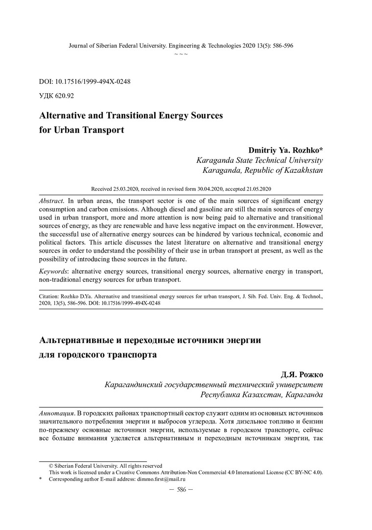Библиографическое описание:Рожко, Д. Я. Альтернативные и переходные источники энергии для городского транспорта / Д. Я. Рожко. - Текст : непосредственный // Журнал Сибирского федерального университета. Техника и технологии. - 2020. - Т. 13, № 5. - С. 586-596 : рис. - Библиогр.: с. 595-596. - ISSN 1999-494X.