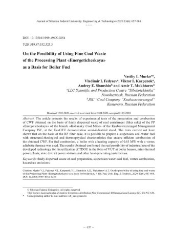 Библиографическое описание:О возможности использования тонкодисперсных отходов углеобогащения ОФ "Энергетическая" в качестве основы для котельного топлива / В. И. Мурко, В. И. Федяев, В. И. Карпенок [и др.]. - Текст : непосредственный // Журнал Сибирского федерального университета. Техника и технологии. - 2020. - Т. 13, № 6. - С. 657-668 : рис. - Библиогр.: с. 667-668. - ISSN 1999-494X.
