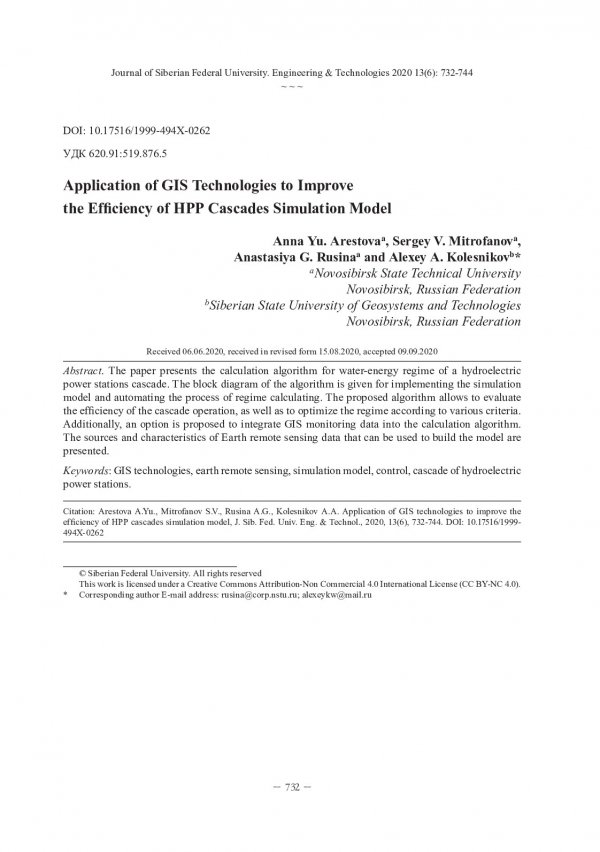 Библиографическое описание:Применение ГИС-технологий для повышения эффективности имитационного моделирования каскадов ГЭС / А. Ю. Арестова, С. В. Митрофанов, А. Г. Русина, A. А. Колесников. - Текст : непосредственный // Журнал Сибирского федерального университета. Техника и технологии. - 2020. - Т. 13, № 6. - С. 732-744 : рис. - Библиогр.: с. 744. - ISSN 1999-494X.
