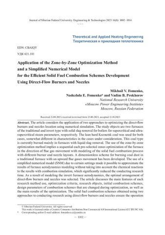Application of the Zone-by-Zone Optimization Method and a Simplified Numerical Model for the Efficient Solid Fuel Combustion Schemes Development Using Direct-Flow Burners and Nozzlesстатья из журнала