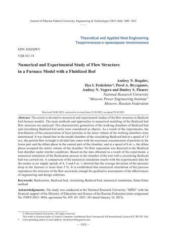 Численное и экспериментальное исследование структуры течения в модели топки с псевдоожиженным слоемстатья из журнала