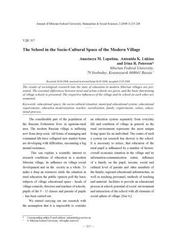 The School in the Socio-Cultural Space of the Modern Villageстатья из журнала