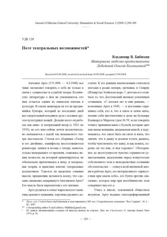 Библиографическое описание:Бибихин, Владимир. Поэт театральных возможностей = The poet with theatrical possibilities / В. В. Бибихин. - Текст : непосредственный // Журнал Сибирского федерального университета. Гуманитарные науки. - 2008. - Т. 1, № 3. - С. 289-309. - ISSN 1997-1370.