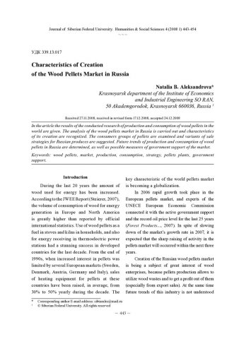 Библиографическое описание:Aleksandrova, Natalia. Characteristics of Creation of the Wood Pellets Market in Russia = Особенности создания рынка брикетов из древесины в России / N. B. Aleksandrova. - Текст : непосредственный // Журнал Сибирского федерального университета. Гуманитарные науки. - 2008. - Т. 1, № 4. - С. 443-454. - Библиогр.: с. 454. - ISSN 1997-1370.