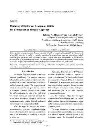 Библиографическое описание:Akimova, Tatyana. Модернизация экологической экономики на основе применения системного подхода = Updating of Ecological Economics Within the Framework of Systems Approach / T. A. Akimova, A. I. Pyzhev. - Текст : непосредственный // Журнал Сибирского федерального университета. Гуманитарные науки. - 2010. - Т. 3, № 6. - С. 816-822. - Библиогр.: с. 821-822. - ISSN 1997-1370.