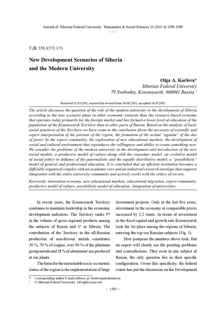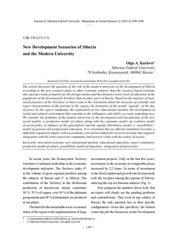 New Development Scenarios of Siberia and the Modern Universityстатья из журнала