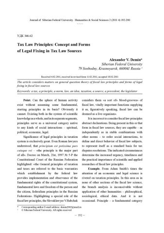Библиографическое описание:Demin, Alexander. Tax Law Principles: Concept and Forms of Legal Fixing in Tax Law Sources = Принципы налогового права: понятие и формы легальной фиксации в источниках налогового права / A. V. Demin. - Текст : непосредственный // Журнал Сибирского федерального университета. Гуманитарные науки. - 2011. - Т. 4, № 2. - С. 192-200. - Библиогр.: с. 199-200. - ISSN 1997-1370.