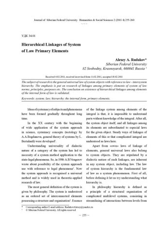 Библиографическое описание:Rudakov, Alexey. Hierarchical Linkages of System of Law Primary Elements = Иерархические связи первичных элементов системы права / A. A. Rudakov. - Текст : непосредственный // Журнал Сибирского федерального университета. Гуманитарные науки. - 2011. - Т. 4, № 2. - С. 255-260. - Библиогр.: с. 259-260. - ISSN 1997-1370.