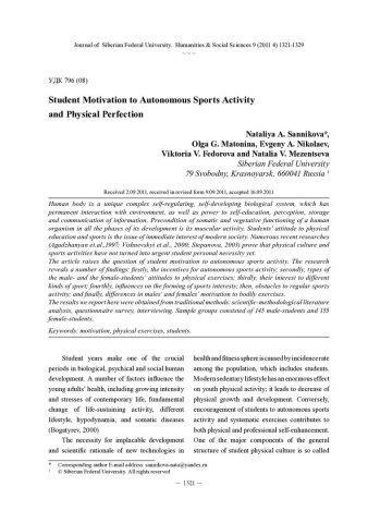 Student Motivation to Autonomous Sports Activity and Physical Perfectionстатья из журнала