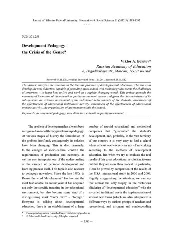 Development Pedagogy - the Crisis of the Genre?статья из журнала