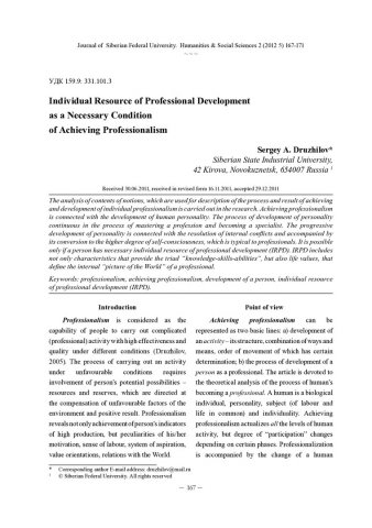 Individual Resource of Professional Development as a Necessary Condition of Achieving Professionalismстатья из журнала