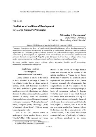 Conflict as a Condition of Development in George Zimmel`s Philosophyстатья из журнала